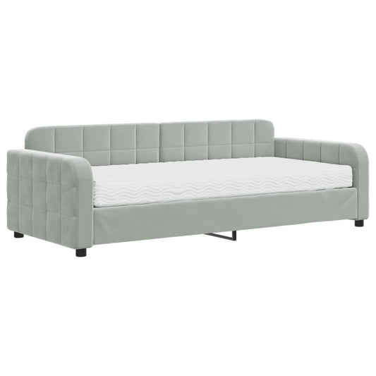 világosszürke bársony kanapéágy matraccal 90 x 200 cm