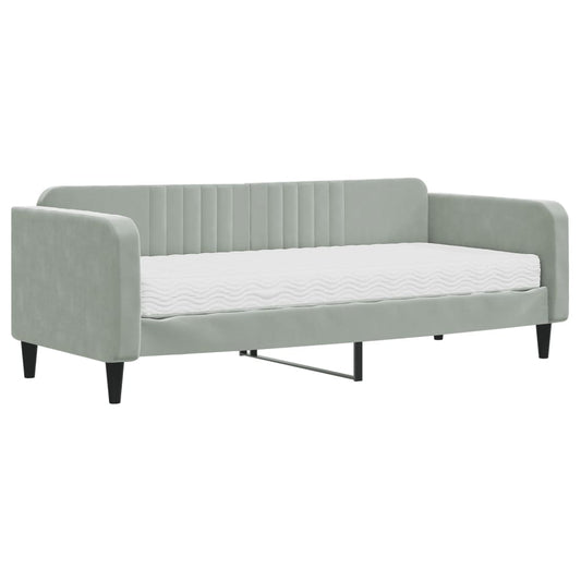 világosszürke bársony kanapéágy matraccal 90 x 200 cm