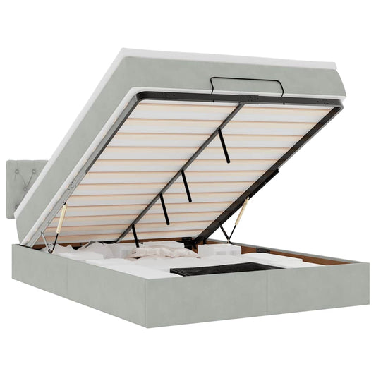 Ottomán ágykeret matraccal világosszürke 140x200cm bársony