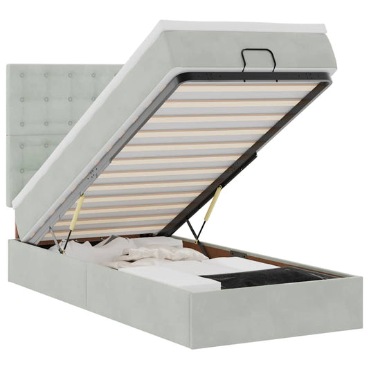 Ottomán ágykeret matracokkal világosszürke 90x200cm bársony