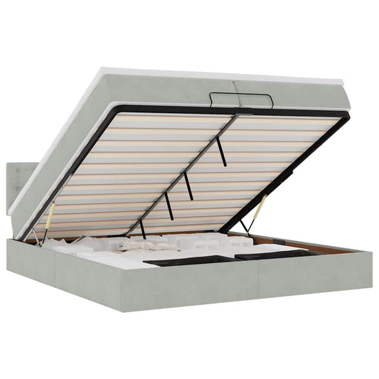 Ottomán ágykeret matraccal világosszürke 200x200 cm bársony