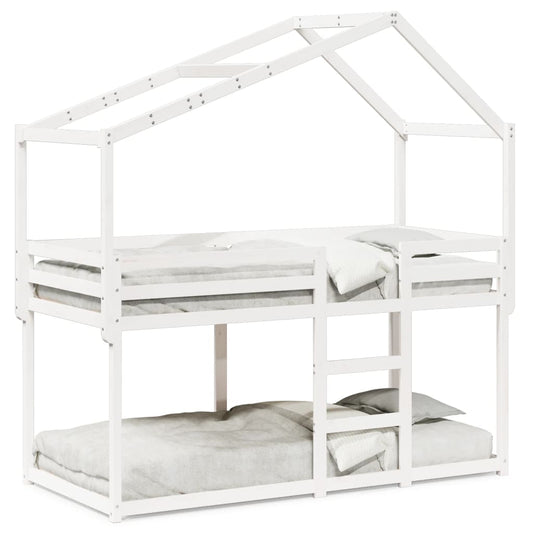 fehér tömör fenyőfa ágy emelettel és tetővel 90 x 200 cm