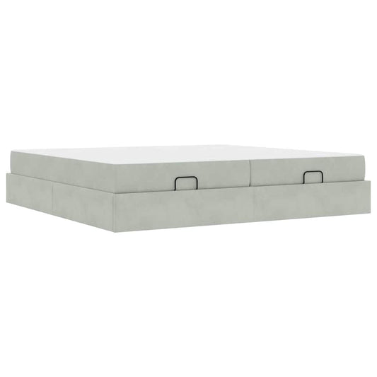 Ottomán ágykeret matracokkal világosszürke 200x200cm bársony