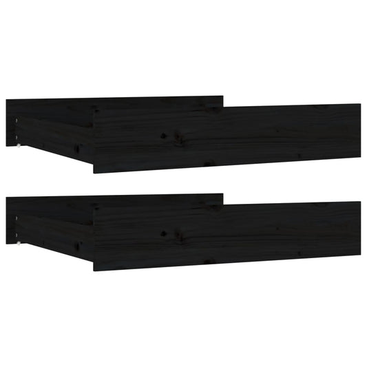 2 db fekete tömör fenyőfa ágyneműtartó fiók