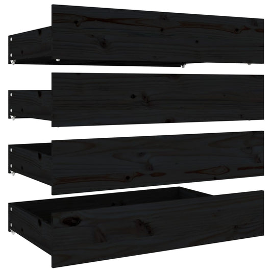 4 db fekete tömör fenyőfa ágyneműtartó fiók