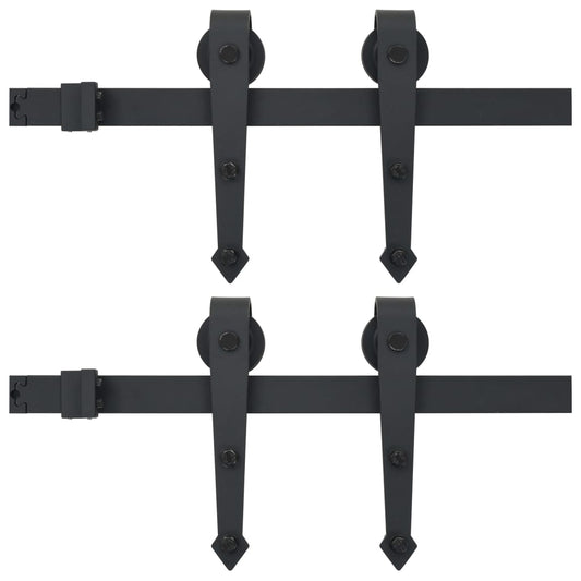 2 darabos fekete acél tolóajtó-szerelvényszett 200 cm