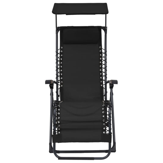 fekete összecsukható porszórt acél napozóágy fejpárnával