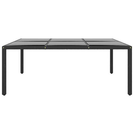 fekete polyrattan és edzett üveg kerti asztal 200 x 150 x 75 cm