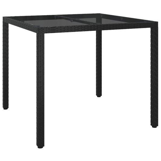 fekete polyrattan és edzett üveg kerti asztal 90 x 90 x 75 cm