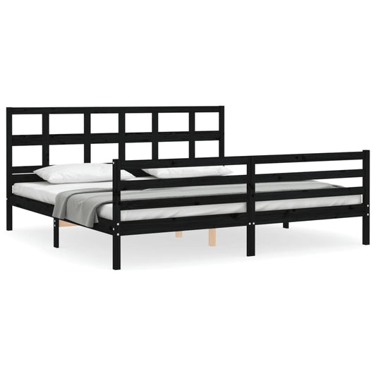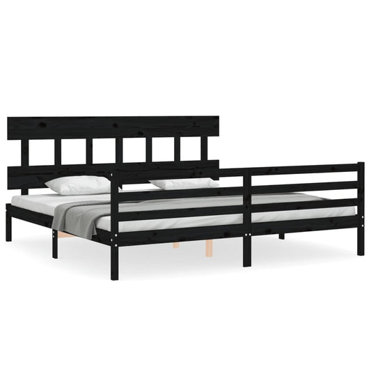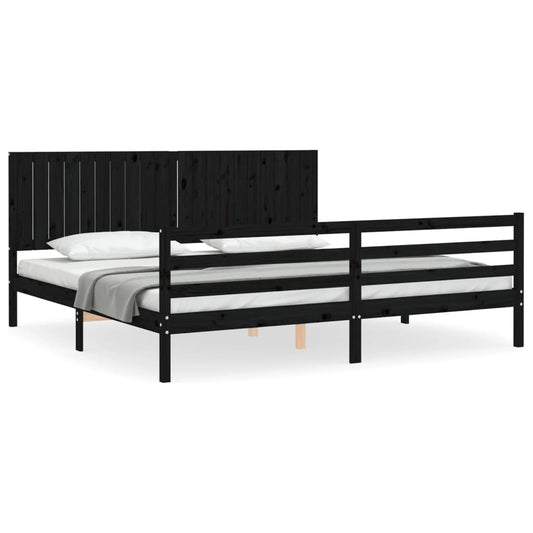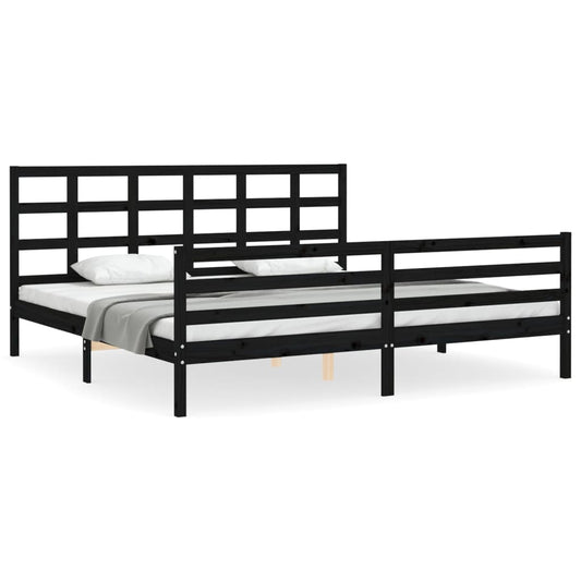 fekete tömör fa ágykeret fejtámlával 200 x 200 cm