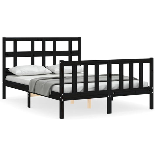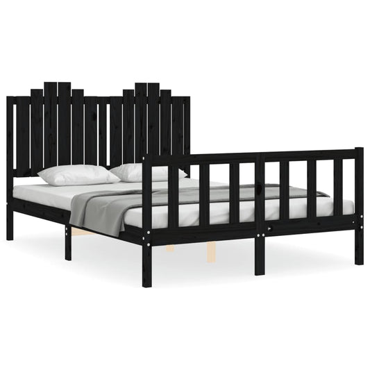 fekete tömör fa ágykeret fejtámlával 140 x 190 cm