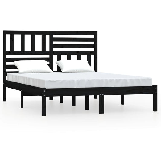 fekete tömör fenyőfa ágykeret 140 x 190 cm