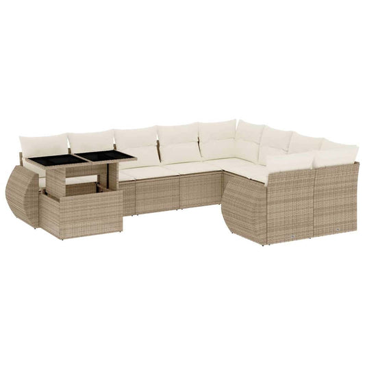 10 részes bézs polyrattan kerti ülőgarnitúra párnával