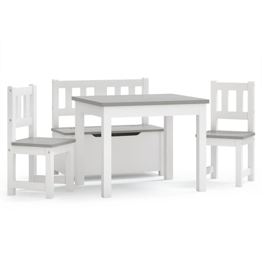 4 részes fehér és szürke MDF gyerekasztal- és székkészlet
