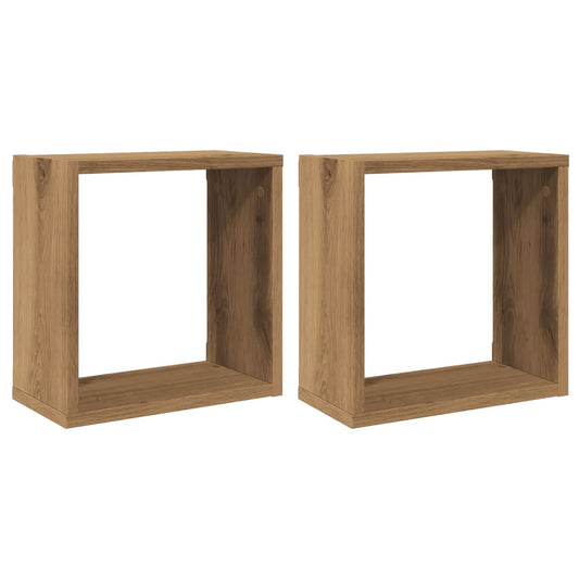 2 db kézműves tölgyszínű szerelt fa fali kockapolc 30x15x30 cm