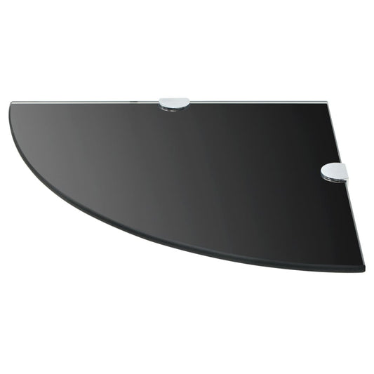 Fekete üveg sarokpolc króm tartóval 35x35 cm
