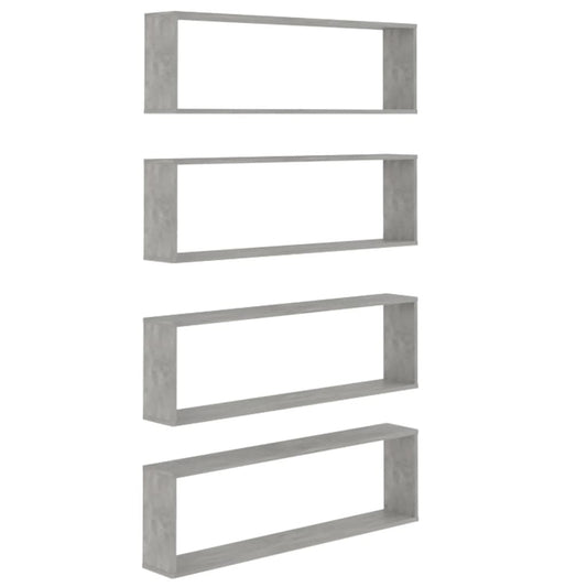 4 db betonszürke szerelt fa fali polc 100 x 15 x 30 cm