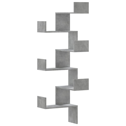 betonszürke szerelt fa fali sarokpolc 45 x 45 x 147 cm
