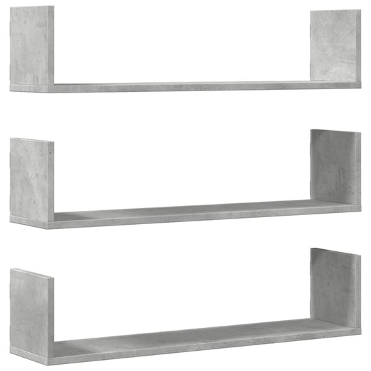 3 db betonszürke szerelt fa fali polc 80 x 18 x 18 cm