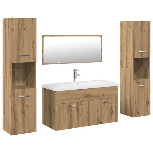 4 részes kézműves tölgy színű szerelt fa fürdőszobai bútorszett