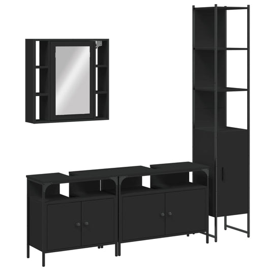 4 részes fekete szerelt fa fürdőszobai szekrényszett