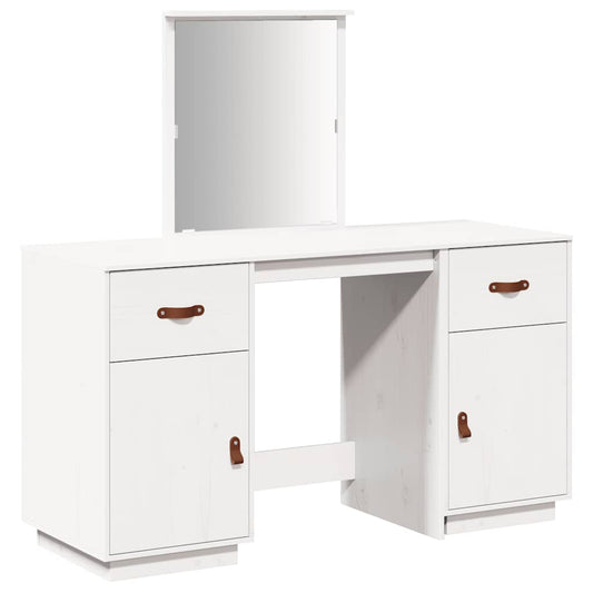fehér tömör fenyőfa fésülködőasztal szett LED-del