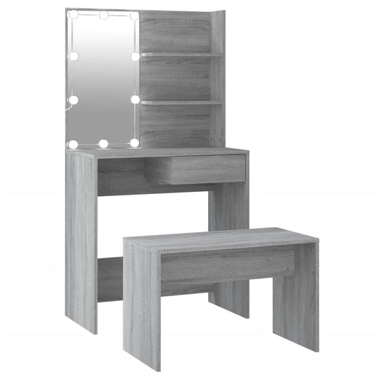 szürke sonoma szerelt fa fésülködőasztal-szett LED-ekkel