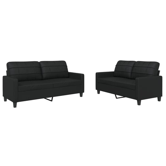 2 részes fekete műbőr ülőgarnitúra párnákkal