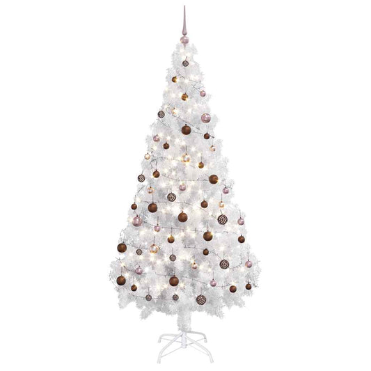 fehér megvilágított műkarácsonyfa gömb szettel 240 cm