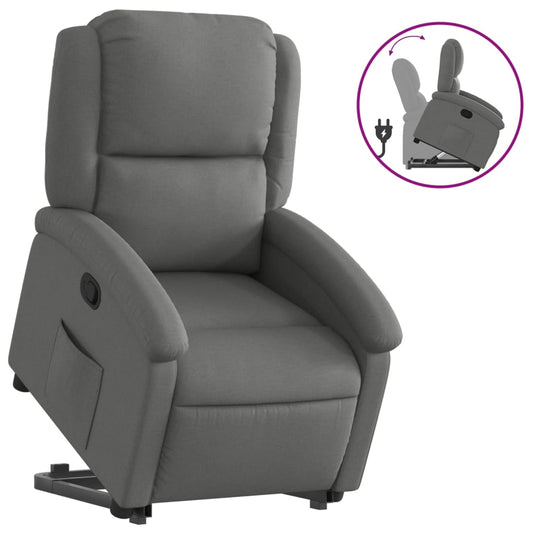 elektromos felállást segítő sötétszürke szövet dönthető fotel