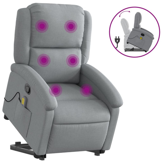 világosszürke szövet dönthető elektromos álló masszázsfotel