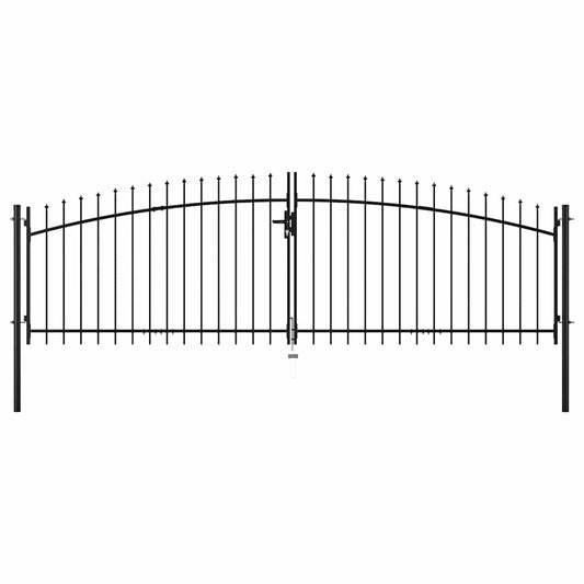 fekete acél lándzsahegy tetejű kétajtós kerítéskapu 3 x 1,5 m