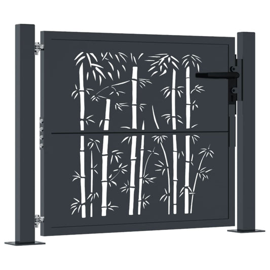 antracit színű acél, bambusz mintás kerti kapu 100x100 cm