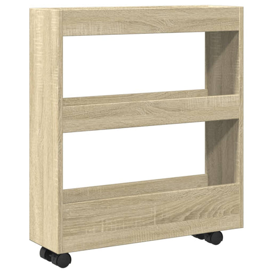 3 szintes sonoma tölgy színű szerelt fa keskeny tárolókocsi