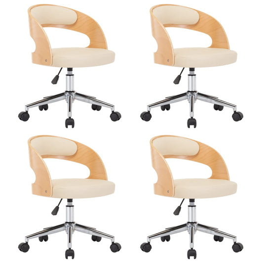 4 db krémszínű hajlított fa és műbőr forgó étkezőszék