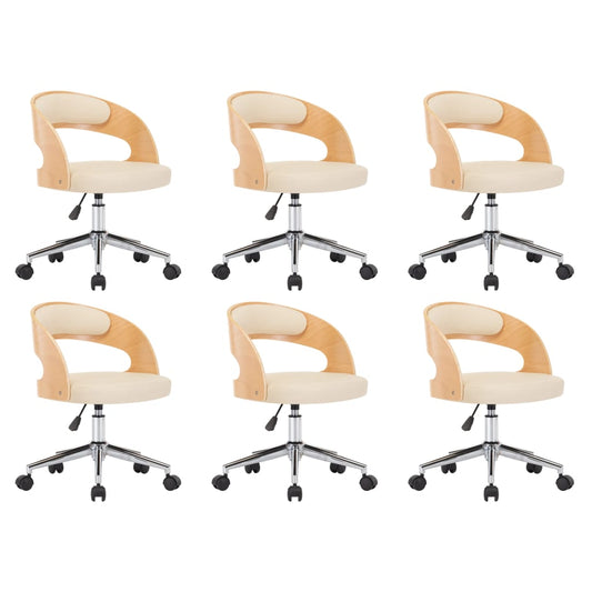 6 db krémszínű hajlított fa és műbőr forgó étkezőszék