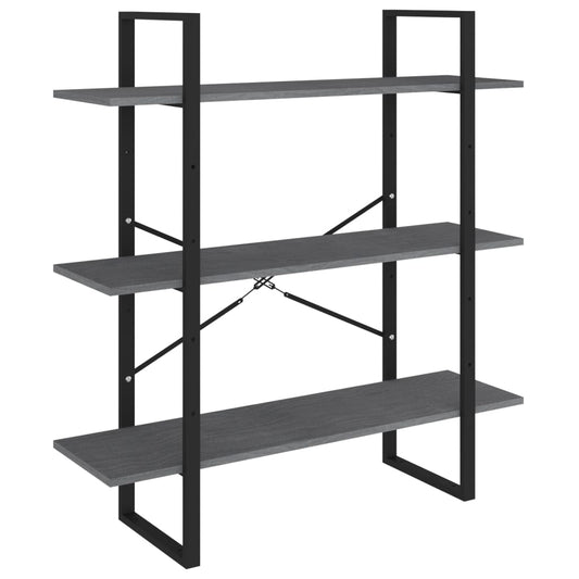 háromszintes szürke tömör fenyőfa könyvszekrény 100x30x105 cm