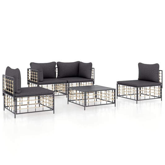 5 részes antracitszürke polyrattan kerti ülőgarnitúra párnákkal