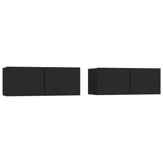 2 db fekete szerelt fa TV-szekrény 80 x 30 x 30 cm