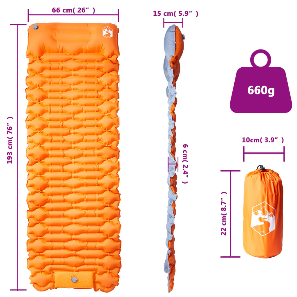 1 személyes narancssárga önfelfújó kempingmatrac párnával