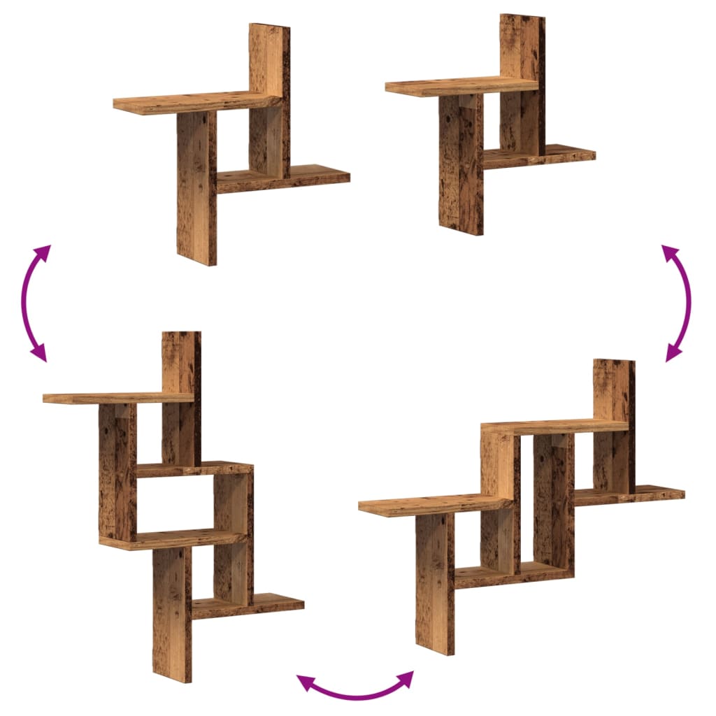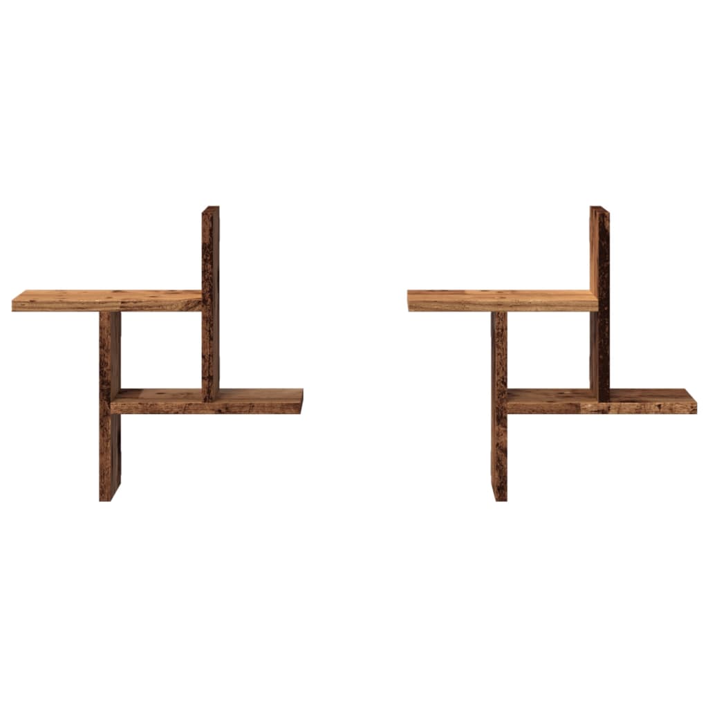 2 db antik fa színű szerelt fa fali polc 38 x 12 x 38 cm