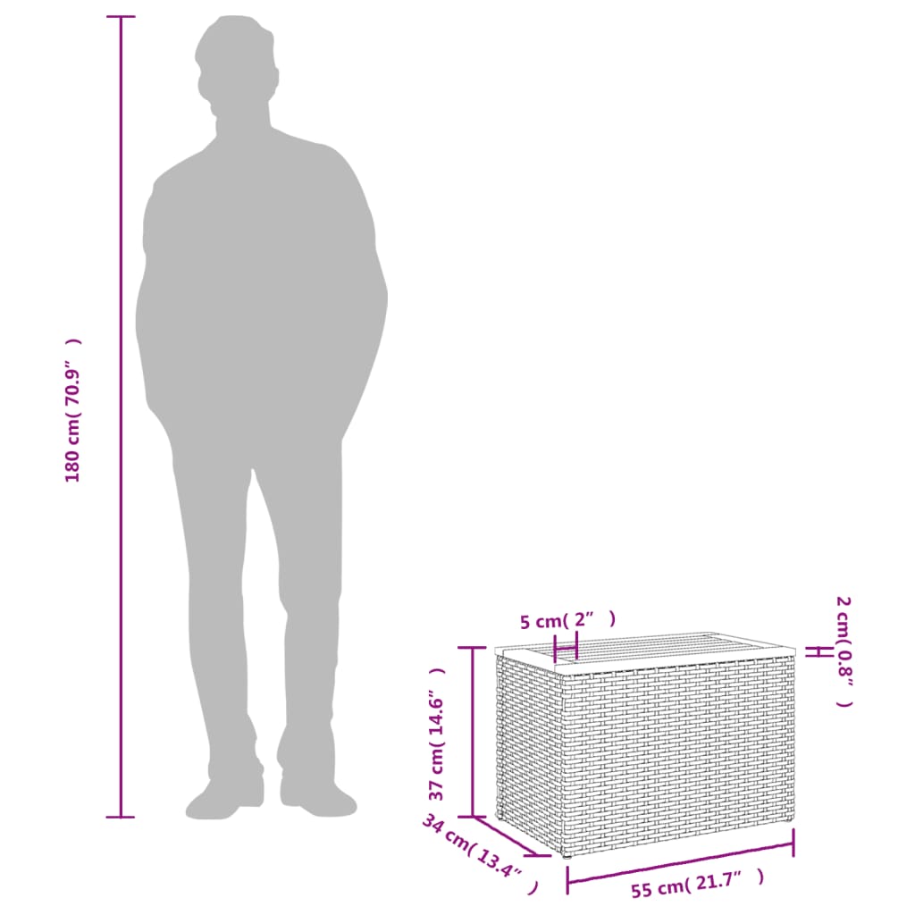 2 db fekete polyrattan és tömör fa kerti kisasztal 55x34x37 cm