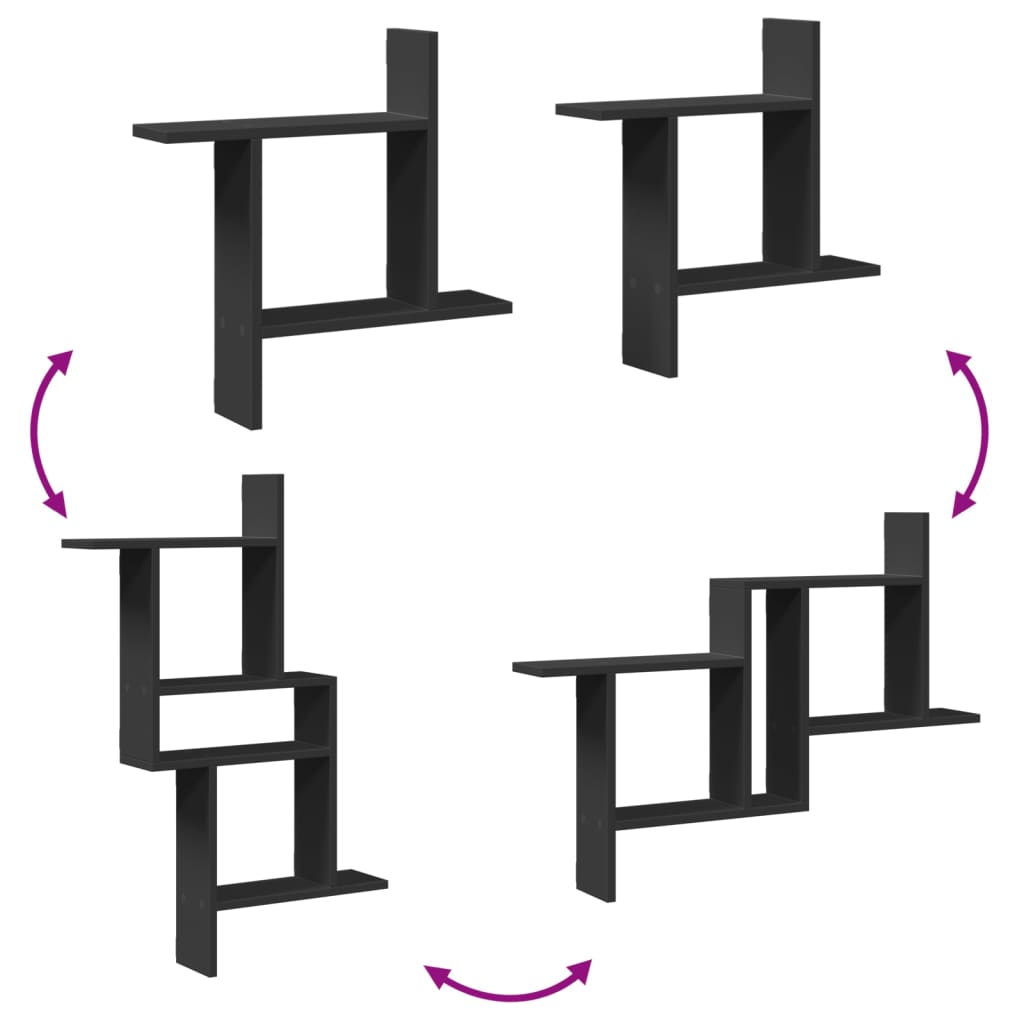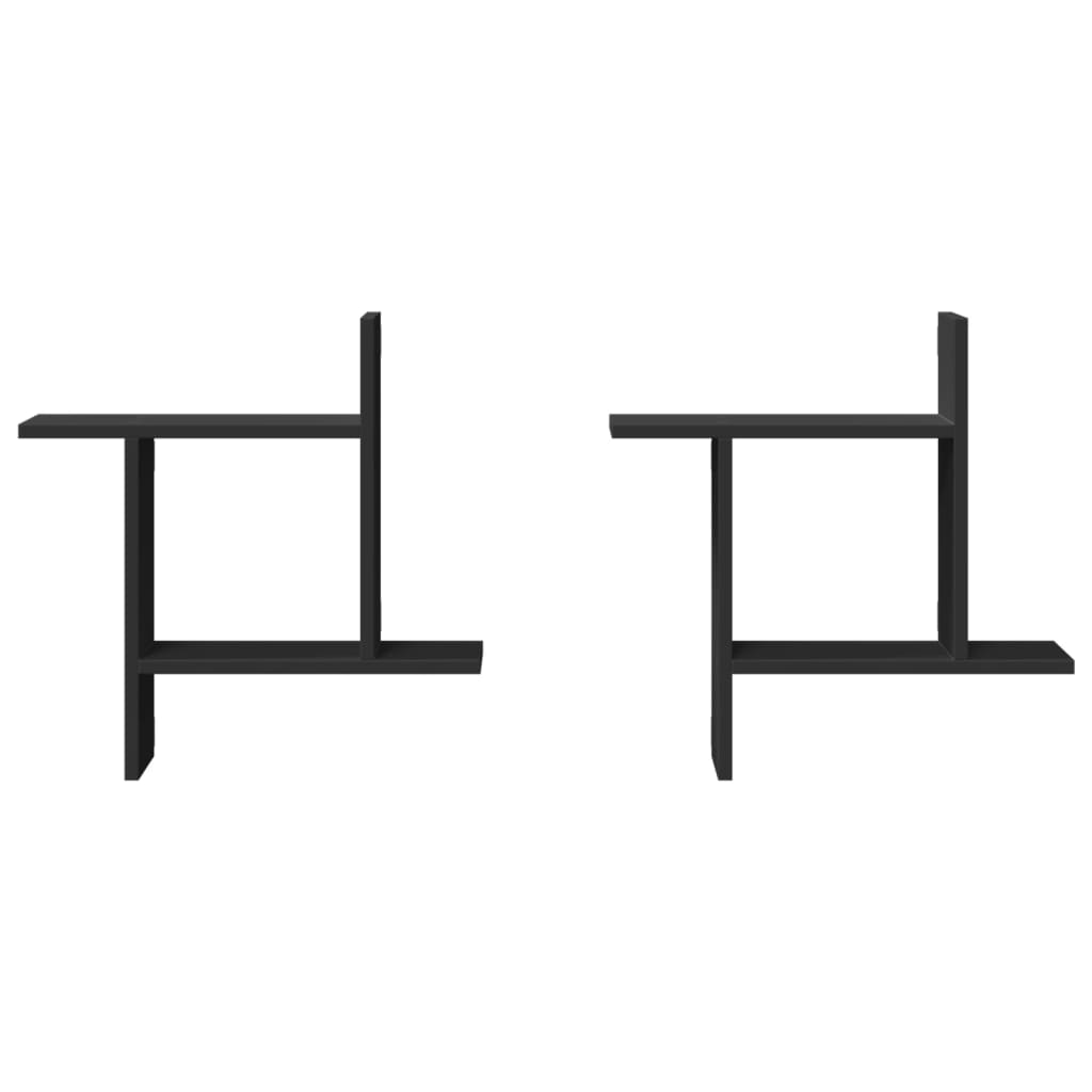 2 db fekete szerelt fa fali polc 50 x 12 x 50 cm