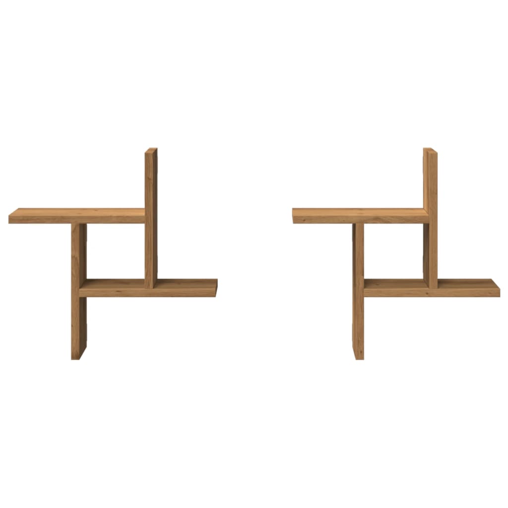 2 db kézműves tölgy színű szerelt fa fali polc 38 x 12 x 38 cm