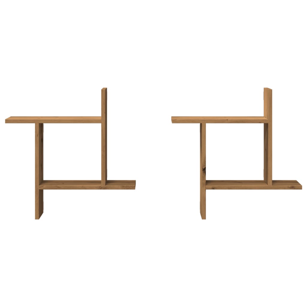 2 db kézműves tölgy színű szerelt fa fali polc 50 x 12 x 50 cm