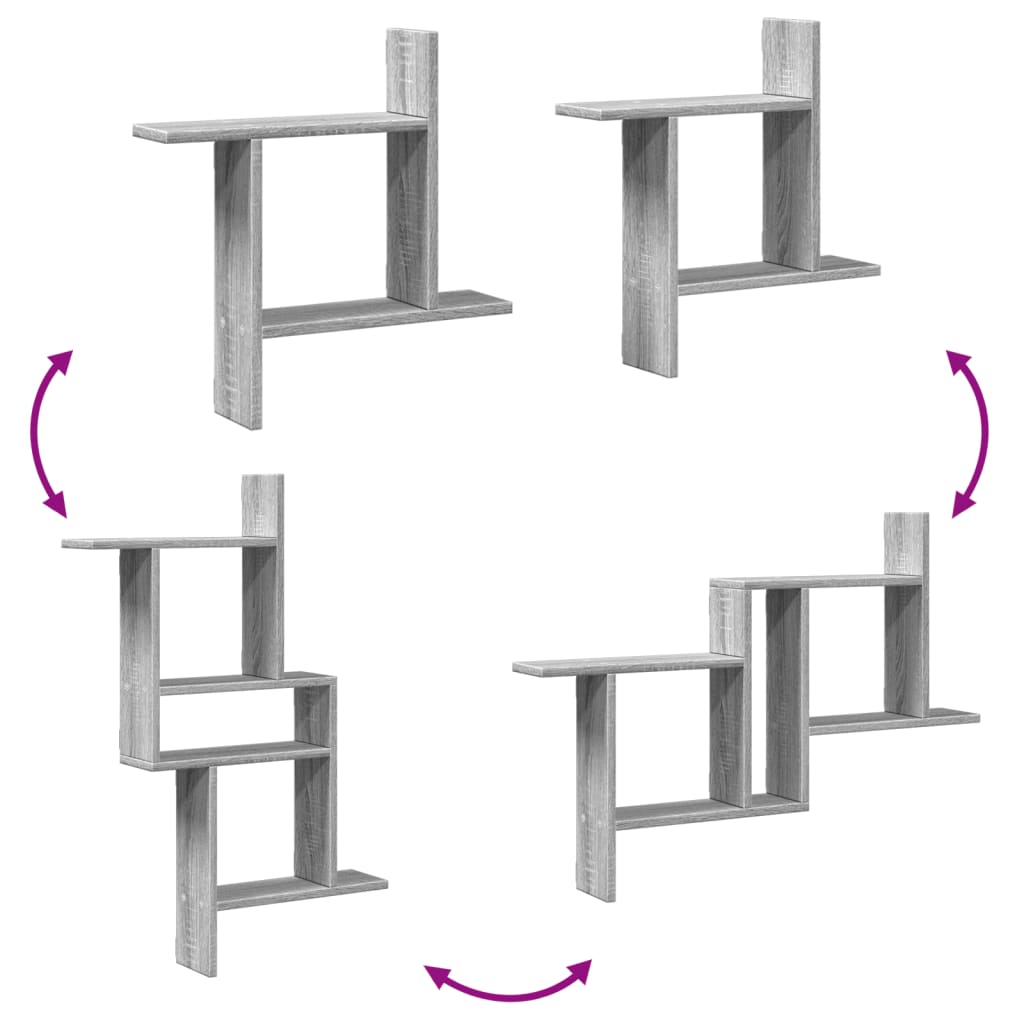 2 db szürke sonoma színű szerelt fa fali polc 50 x 12 x 50 cm