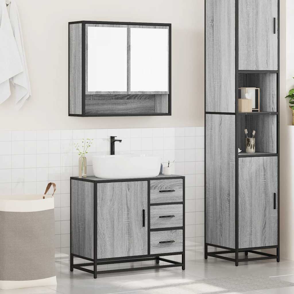 2 részes szürke sonoma színű szerelt fa fürdőszobai bútorszett
