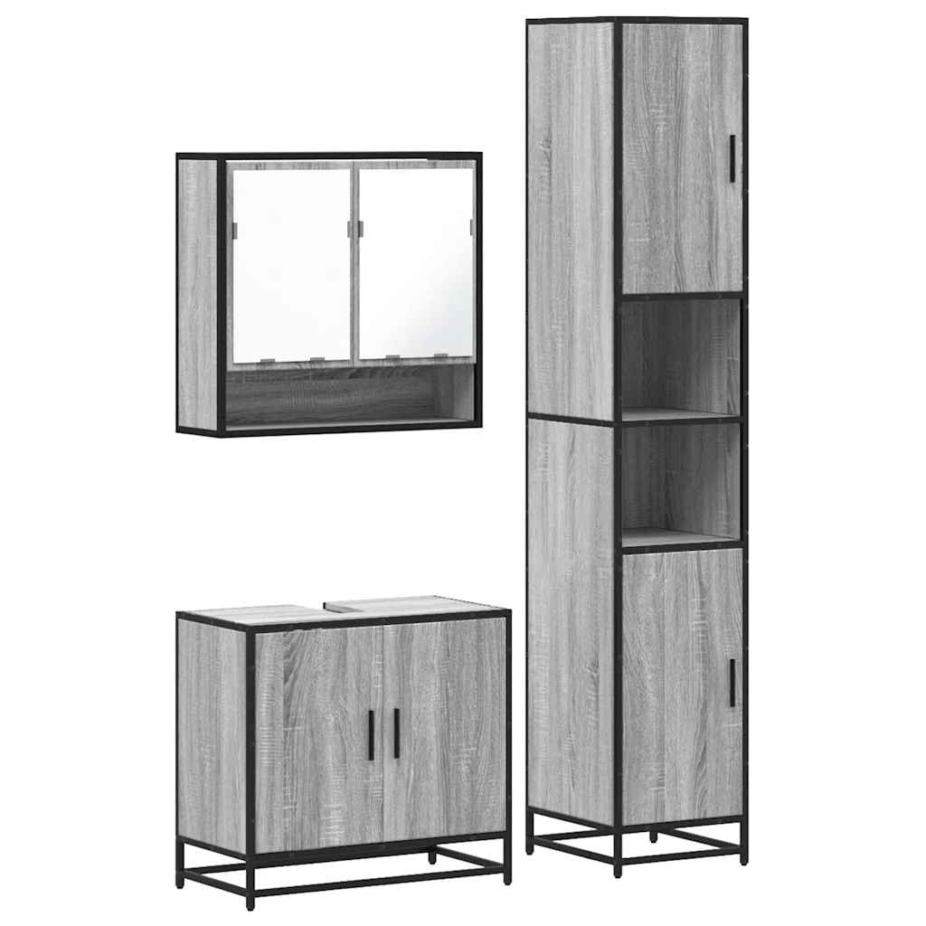3 részes szürke sonoma színű szerelt fa fürdőszobai bútorszett