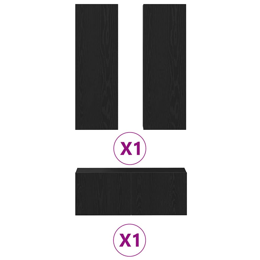 3 Részes TV Szekrény Szett Falra Akasztható Fekete Tölgy Műanyag