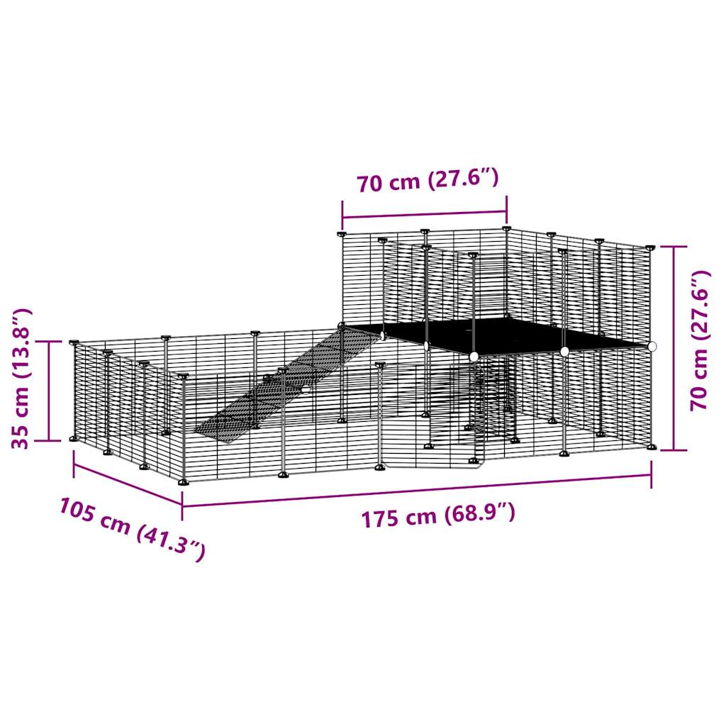 36 paneles fekete acél kisállatketrec ajtóval 35 x 35 cm